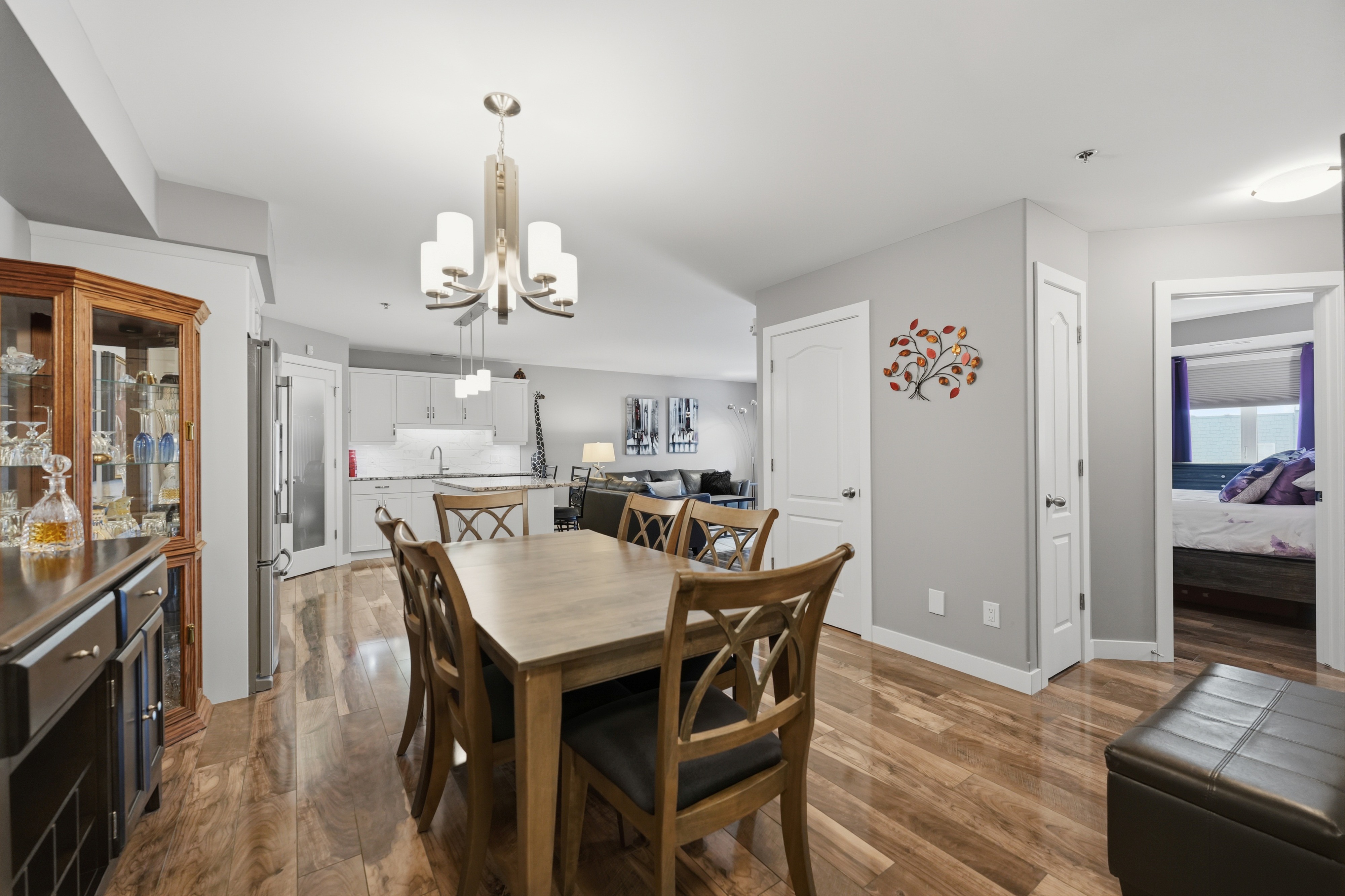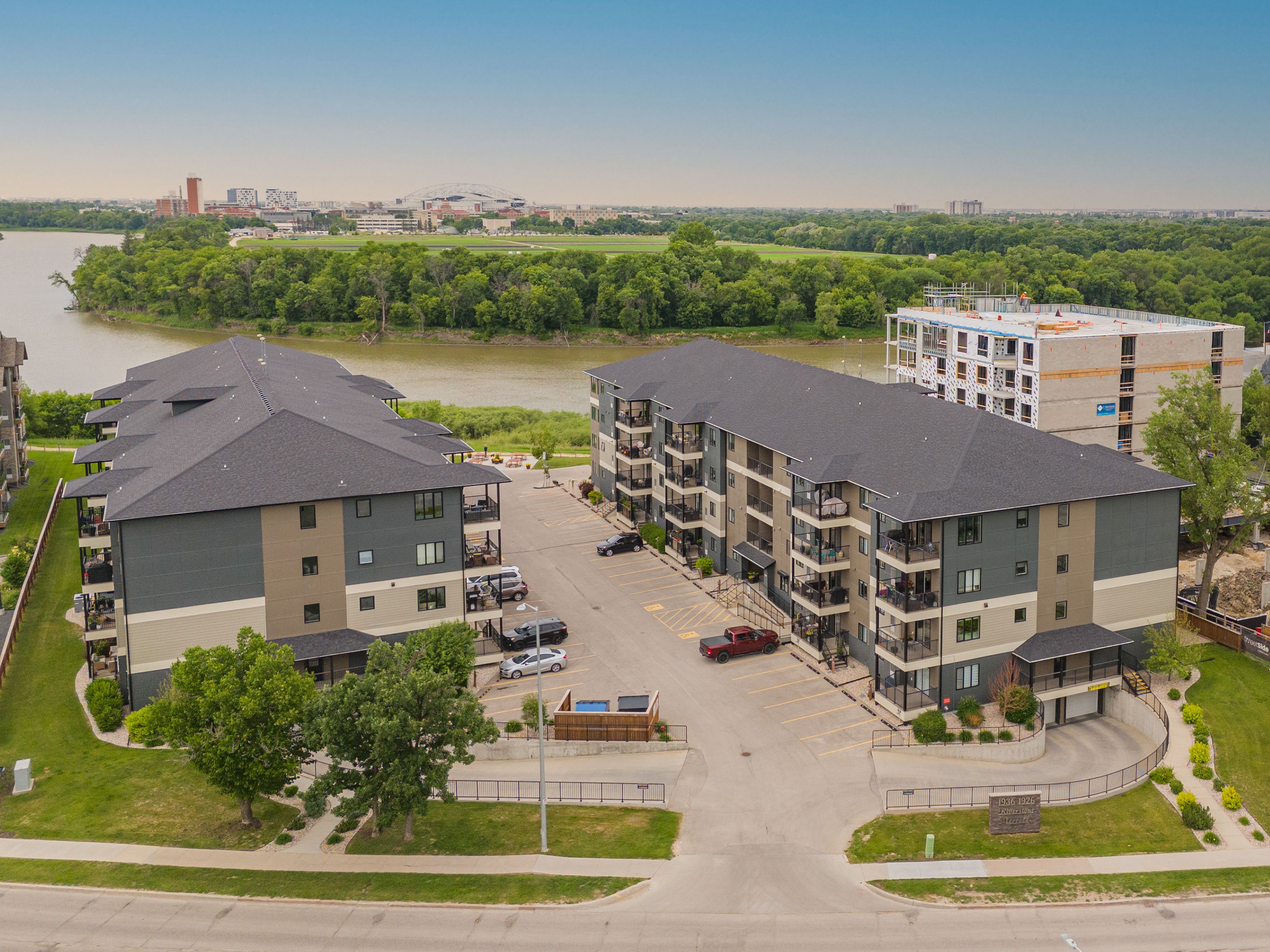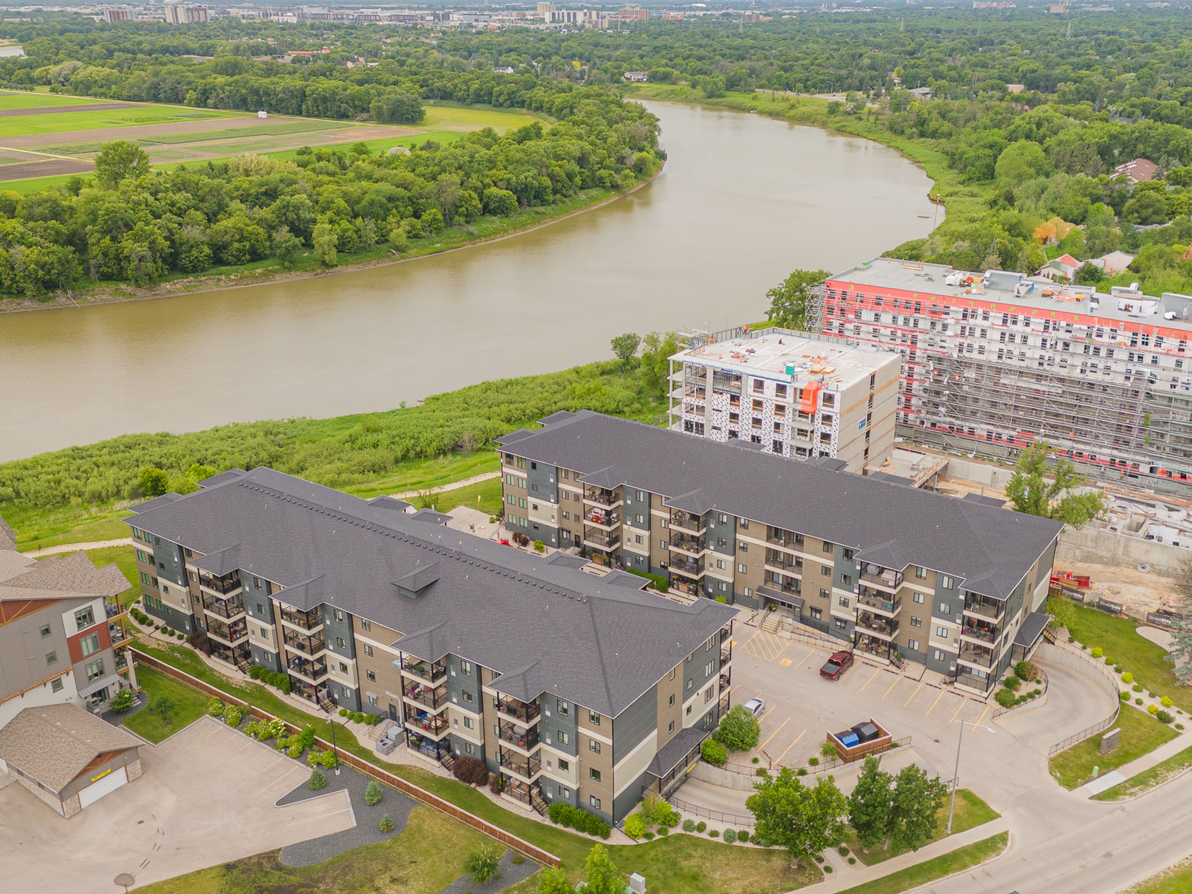 Showings start March 24th. West exposure views of green space and the Red River from your balcony in this affordable condo. Luxury finishing with high end white cabinetry, island with pot drawers, granite counters, tile backsplash, Silgranite undermount sink, corner pantry, under cabinet plus pendant lighting. High quality laminate flooring thru most of the suite and Italian porcelain tile in both bathrooms and in suite laundry. Proper dining area in this floor plan. Primary bedroom with walk in closet and 3 piece ensuite. Shows like new. This unit comes with 1 underground parking stall. Storage locker is just down the hall from the suite. Superior common room with full kitchen, guest suite in the building to reserve. Walking trail on the river plus a 3 minute walk to Henteleff Park. Transit and shopping near by. Central elevator. 2 pets allowed under 33lbs each.