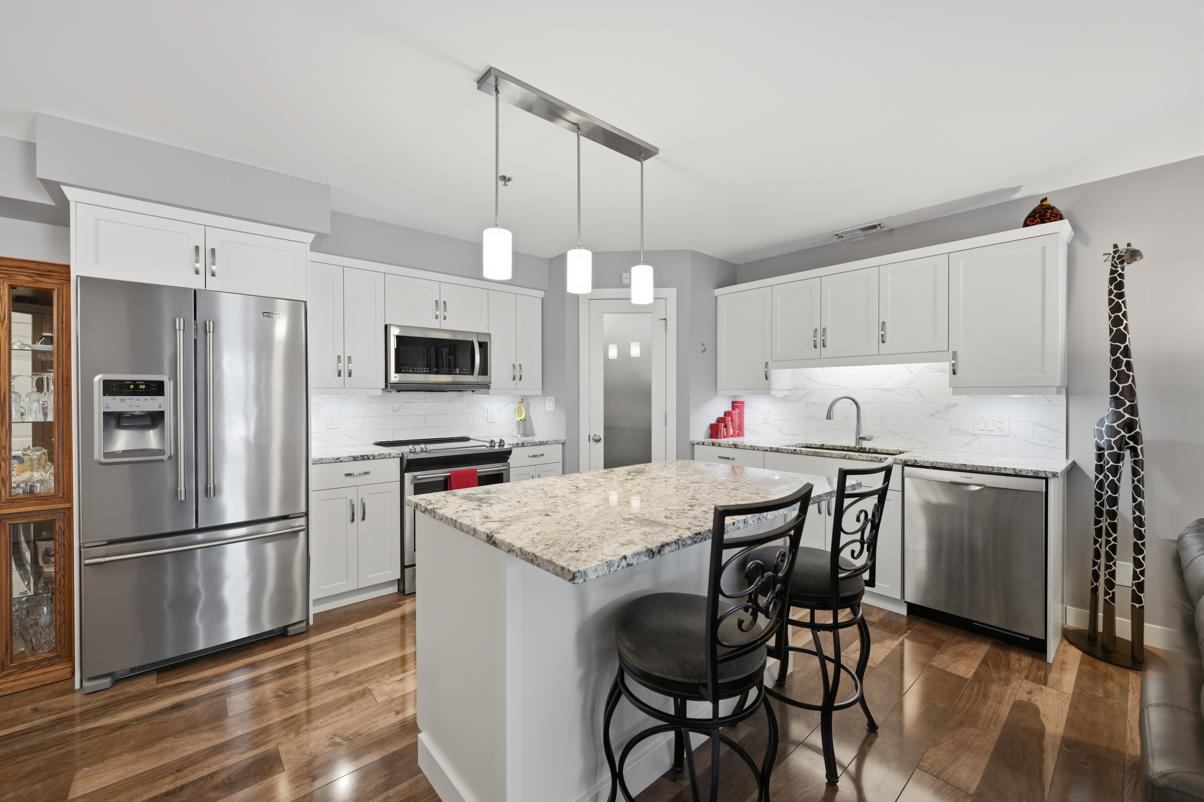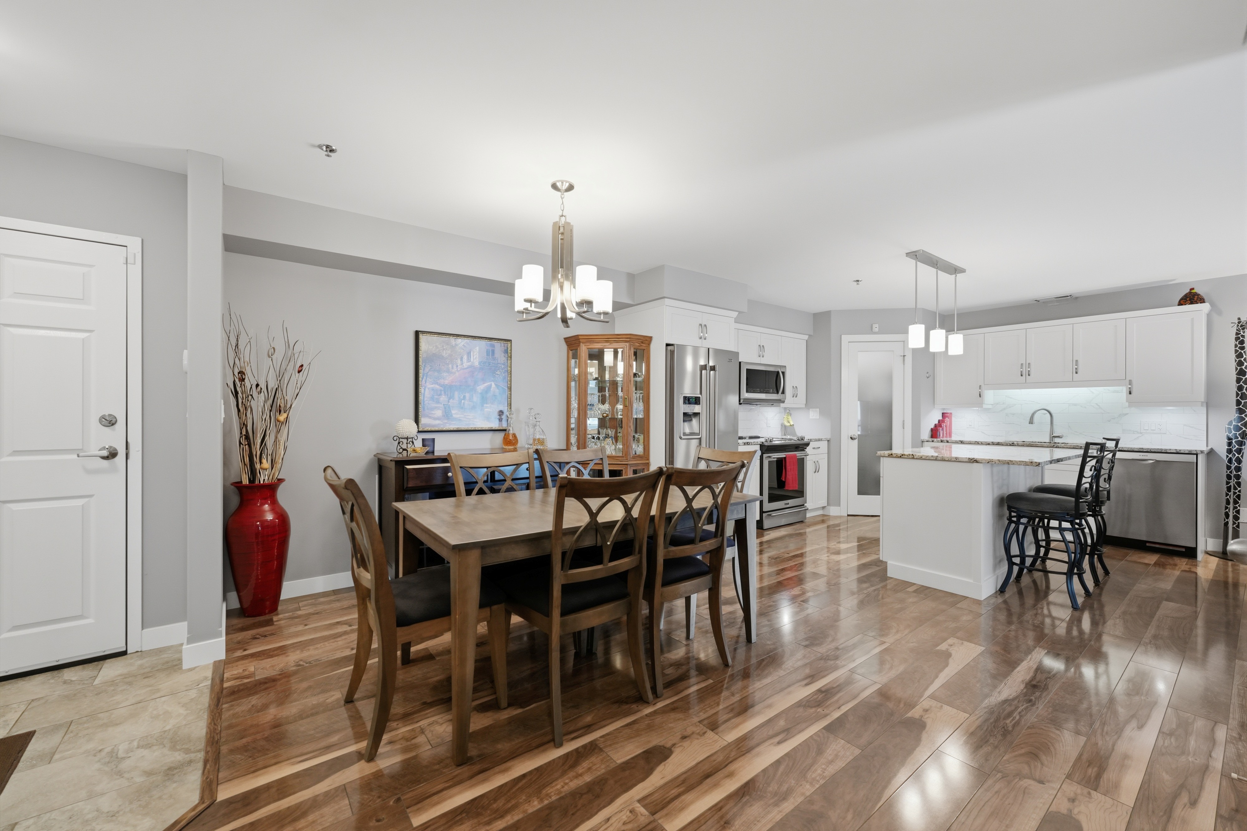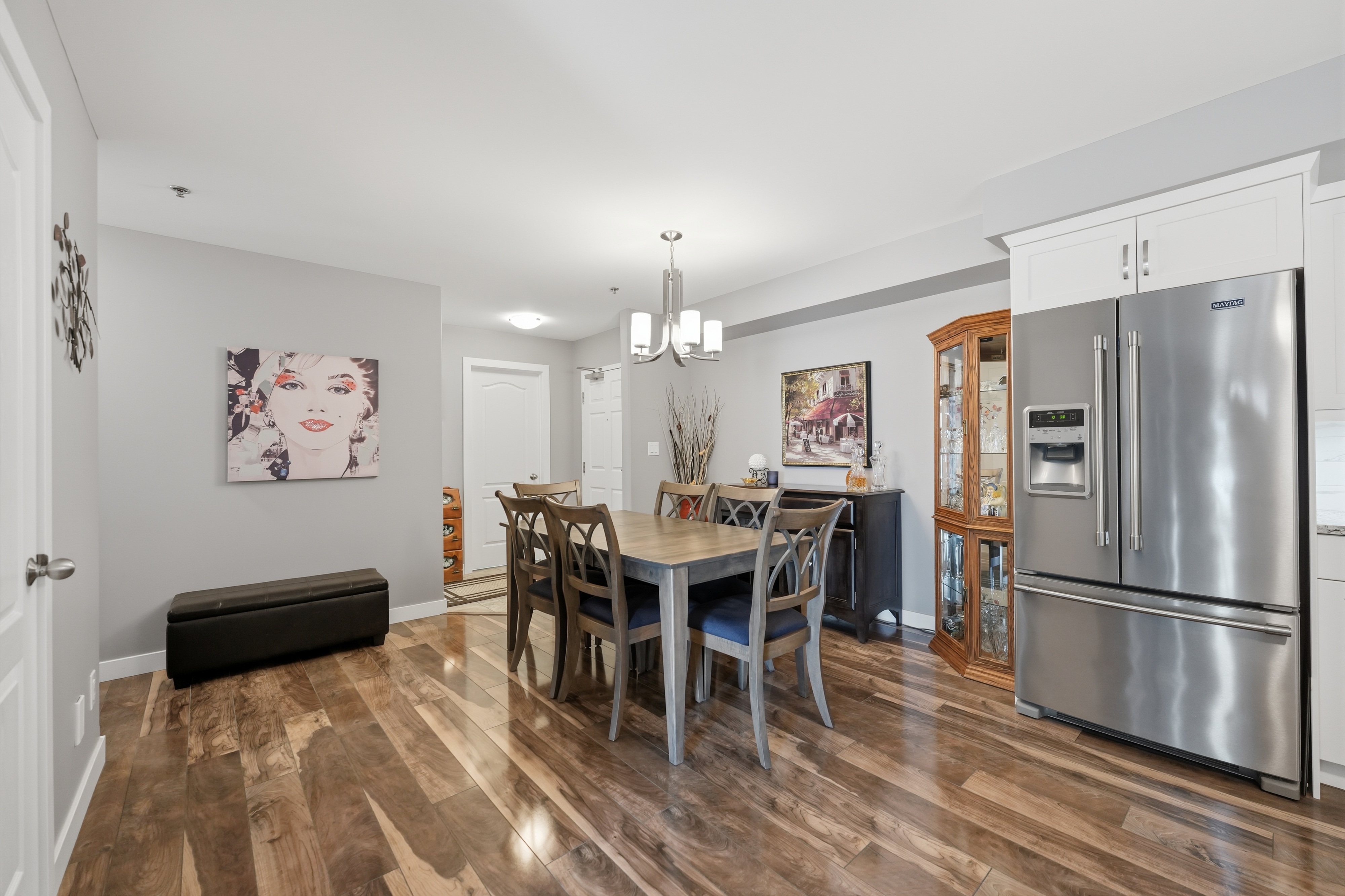 Showings start March 24th. West exposure views of green space and the Red River from your balcony in this affordable condo. Luxury finishing with high end white cabinetry, island with pot drawers, granite counters, tile backsplash, Silgranite undermount sink, corner pantry, under cabinet plus pendant lighting. High quality laminate flooring thru most of the suite and Italian porcelain tile in both bathrooms and in suite laundry. Proper dining area in this floor plan. Primary bedroom with walk in closet and 3 piece ensuite. Shows like new. This unit comes with 1 underground parking stall. Storage locker is just down the hall from the suite. Superior common room with full kitchen, guest suite in the building to reserve. Walking trail on the river plus a 3 minute walk to Henteleff Park. Transit and shopping near by. Central elevator. 2 pets allowed under 33lbs each.
