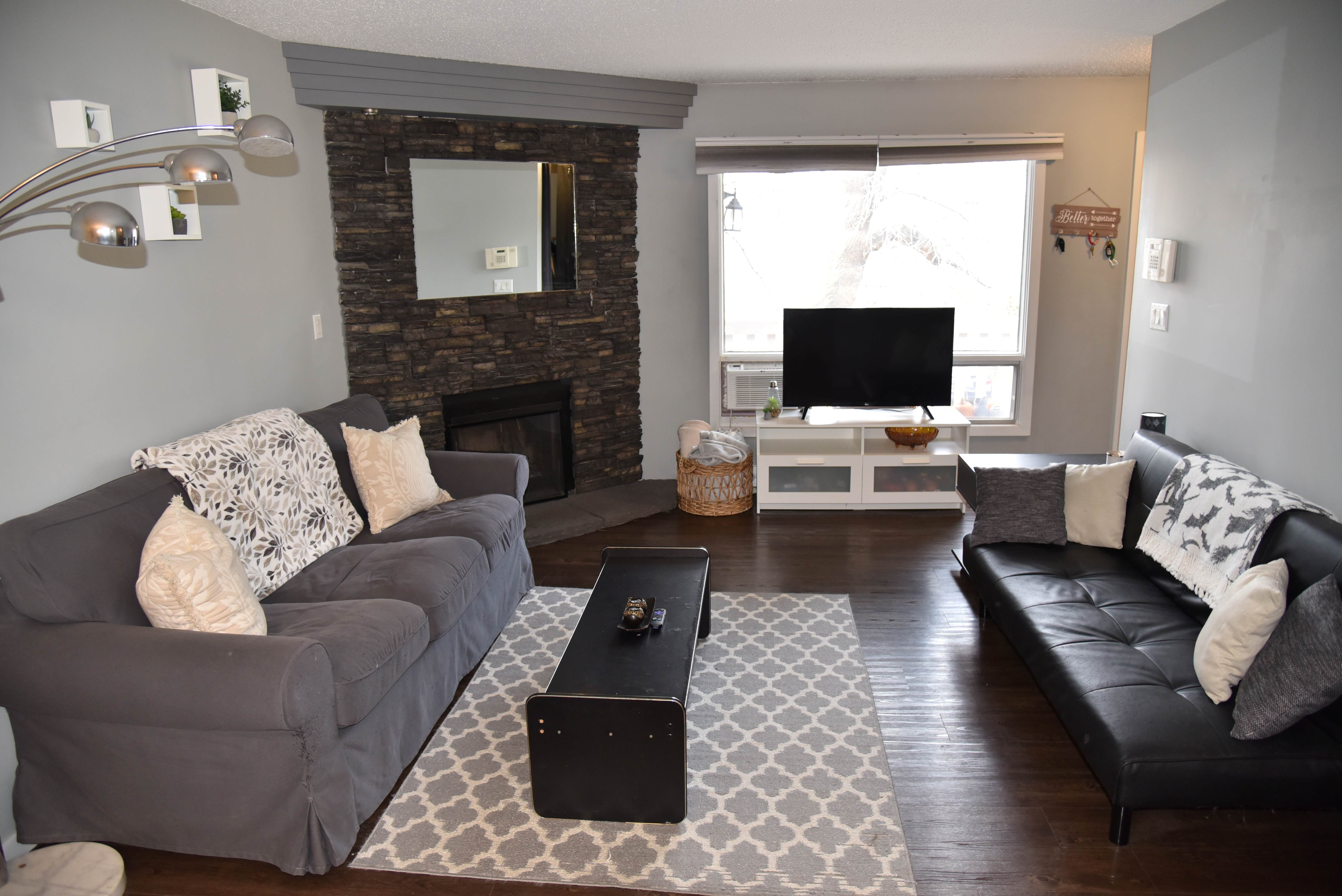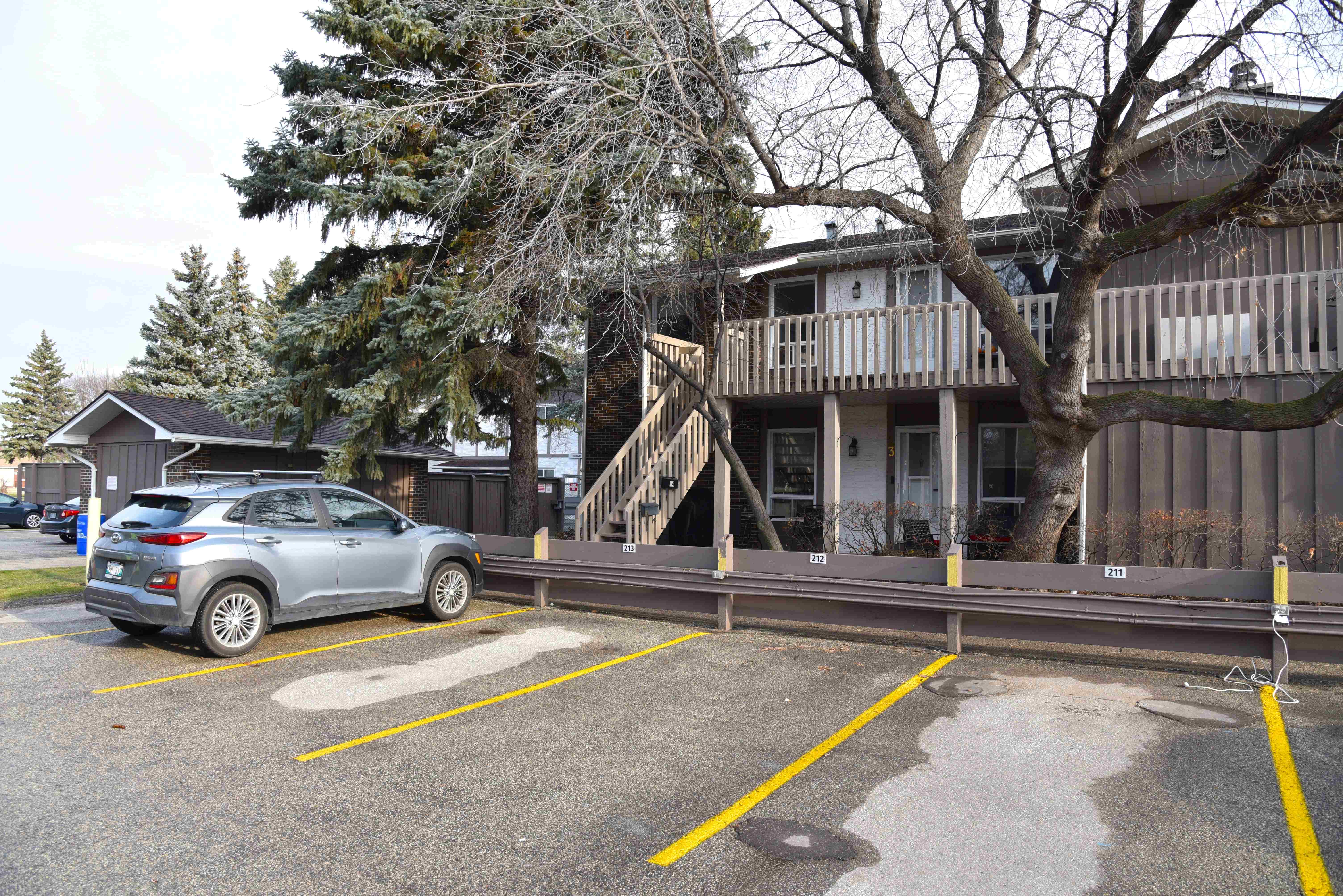 Showings start Thursday Nov 20th, offers Tuesday Nov 25th. Great quiet location for this 3 bedroom condominium at the west end of the property. Upper level corner suite with large balcony and nicely treed. Completely remodelled 10 years ago and it still looks good. Nice modern high gloss kitchen cabinetry, stainless steel appliances, tile backsplash, undercabinet lighting. Large living room with stone wood burning fireplace, dining room open to the living room & both with vinyl plank floors. Bathroom with modern vanity, tile tub surround, extra laundry cabinets. Good sized bedrooms. Parking stall in front of the suite, extra parking available for rent at $30 month. You'll enjoy having the inground pool on the property in hot summers. Tennis courts also on the property. Storage shed off porch/balcony. Convenient for shopping and transit. Cats allowed no dogs. Hydro budget $97 month.